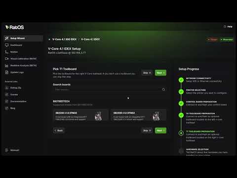 Follow the rest of the configurator to choose and flash your controller and toolboard, as well as select the appropriate hardware. During the configurator process, the standard V-Core 4.1 components are pre-selected. Unless your machine is not a standard kit, you should not need to change any parameters.